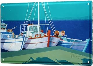 LEotiE SINCE 2004 Plaque en métal emaillee Galerie Peintre Franz Heigl Image Bateaux de p?Che Bateau Dock mer Poster