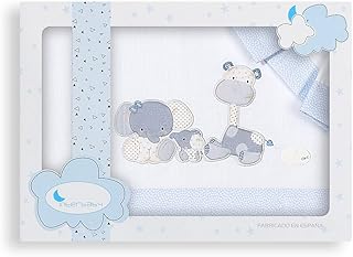 Petit Praia Parure de Lit 60 + Drap Housse + Taie d'Oreiller Estrellas Céleste