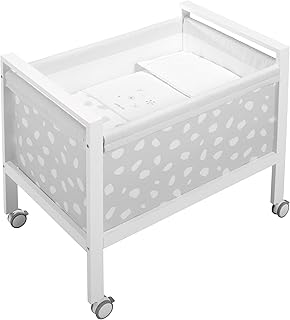 roba Berceau cododo ‘Babysitter 4 en 1’, bois laqué en gris clair, collection Rock Star Baby, utilisable comme cododo, berceau (avec pieds balancelle), petit lit (avec roulettes), banc, avec matelas