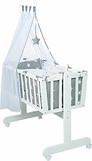 roba Berceau complet, berceau 'Little Stars' (40x90cm) en bois, laqué blanc, berceau avec fonction basculante et fixe, set berceau comprend le linge de lit complet (80x80cm).