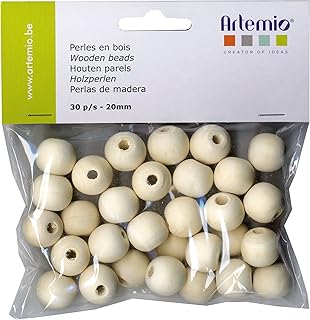 Artemio 12 Pièces 25 mm perles en bois, Beige