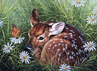 DIY Peinture à l'huile Peinture par numéro kit pour enfants adultes débutants 40,6 x 50,8 cm – Petit Cerf et papillon, le dessin avec un pinceau de Noël Décor Décorations cadeaux Without Frame