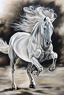 Kit de peinture diamant 5D DIY - Cheval en cours d'exécution - broderie diamant animaux au point de croix Artisanat Approvisionnement peinture numéro adulte pour salon - Décoration murale - 30x40cm