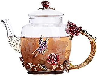 YBK Tech Créatif Théière en Verre à fleurs Théière en Verre de Cristal pour Kung Fun Tea, Bon Cadeau pour Sœur, Maman (Rose Rouge)